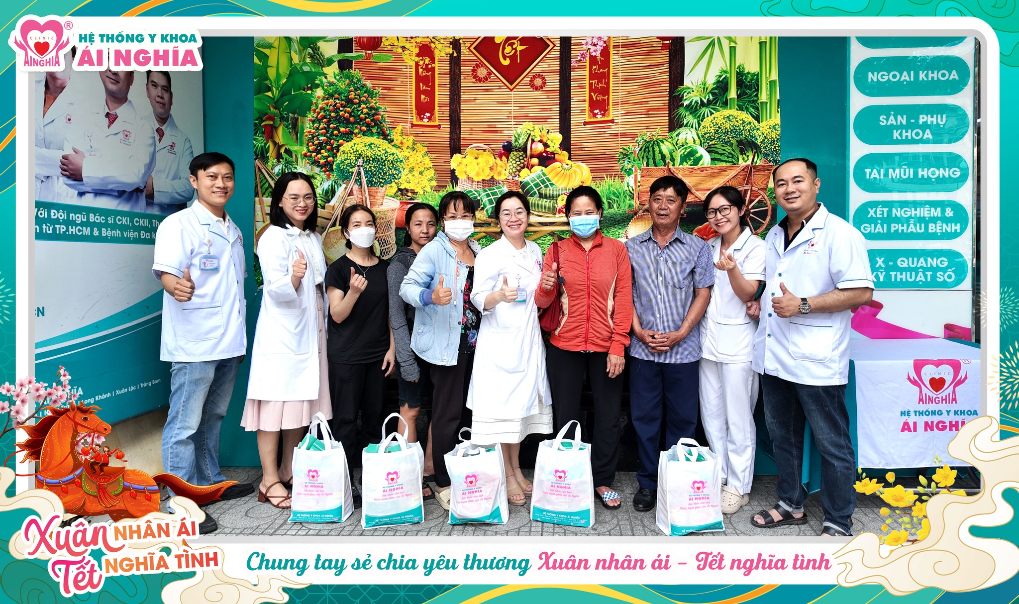 Với mong muốn mang Tết đến gần hơn với tất cả mọi người, Hệ thống Y khoa Ái Nghĩa đã tổ chức hoạt động trao quà từ thiện, gửi tặng hơn 500 phần quà Tết đến người dân tại 9 phòng khám thuộc hệ thống và Nhà Bác Ái Sông Trầu (Trảng Bom) – nơi đang chăm sóc, nuôi dưỡng các cụ già neo đơn.