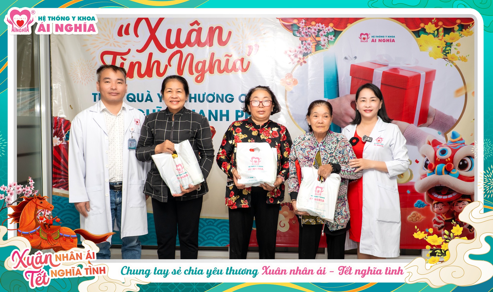 Mỗi phần quà trao đi không chỉ là những nhu yếu phẩm thiết thực cho ngày Tết, mà còn là sự quan tâm chân thành, là lời chúc bình an mà tập thể y bác sĩ, điều dưỡng và nhân viên Ái Nghĩa mong muốn gửi gắm. Đó là mong ước giản dị rằng ai cũng có một cái Tết đủ đầy hơn, ấm áp hơn và vơi bớt những lo toan thường nhật.